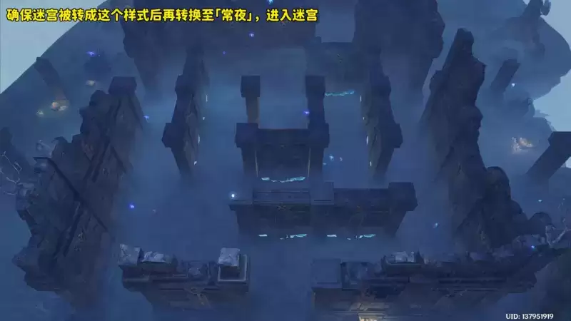 (2)如果你已经转动过迷宫,你需要确保迷宫转成如下图这个状态。在这个状态下切换至“常夜”,进入迷宫。