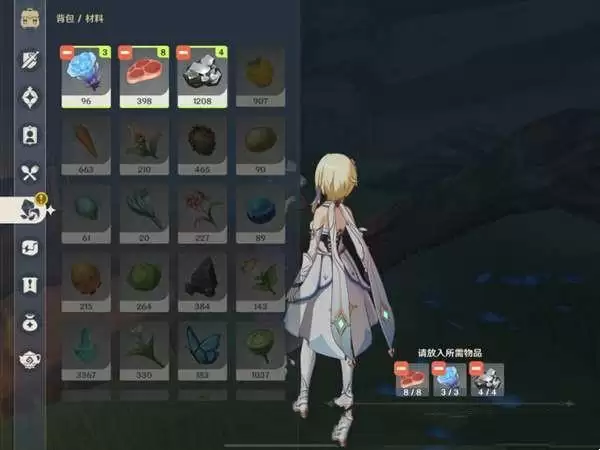 并按照百代要求准备材料:瘦肉8个、白铁块4个和那个蓝色灵芝3个!