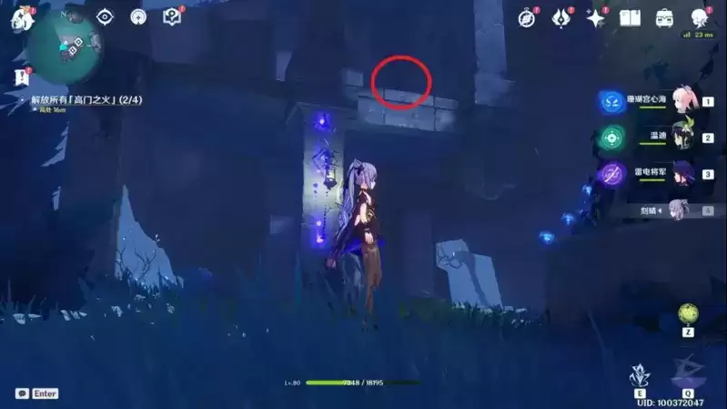 6、最后一个火炬位于西侧房间的楼顶,岩元素角色或者风元素角色垫高点就可以了