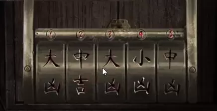把获得的旗子拿来开那个门,门打开之后继续收集东西,有一个锁是大凶之内的,玩家们需要按照手册中的大吉大凶的对应,按照图案的提示来打开,可以看见一个招财猫。