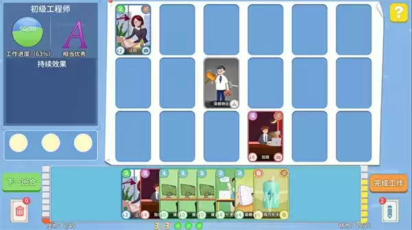在游戏中玩家可以体验到职场中经常发生的事情,“上班”、“加班”、“摸鱼”等三种不同风格的卡牌类型可以选择,不同的选择都各有千秋。同时在工作的过程中也将会发生很多事情,比如马虎粗心、领导训斥、强势甲方、电脑宕机等等一系列Debuff事件,需要通过更换和提升卡牌来解决问题。