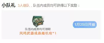 从1月25日上午11点开始进入游戏签到即可获得好礼相送,组队还可获取凤鸣武器成品随机包!