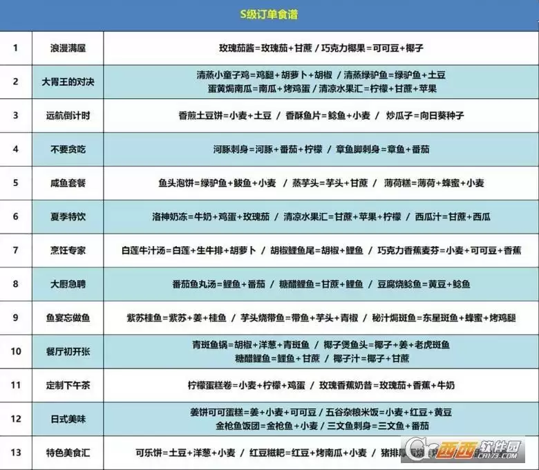创造与魔法咕叽的订单食谱分享