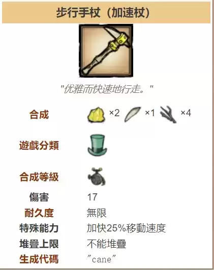 饥荒游戏中玩家可以通过各种资源制作各种道具,其中步行手杖是一个加速杖,需要玩家先制作科学仪器以及炼金机器来解锁科技要求,那么具体的饥荒步行手杖怎么做呢?下面就为玩家们带来饥荒步行手杖代码以及制作方法,一起来看看吧。
