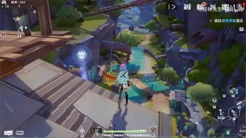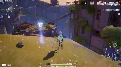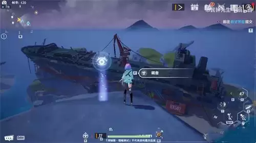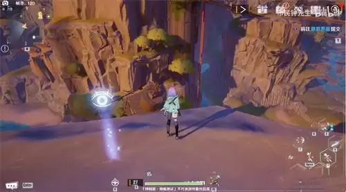 2、传送过去之后到原能塔的下面,在原能塔左侧的悬崖边上就可以找到调查点,如下图