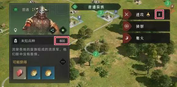 由于每次战斗指令的体力消耗是恒定的(新手期8点,之后15点),所以我们要在战损的接受范围内,尽可能的挑战高级蛮族队伍和资源田。