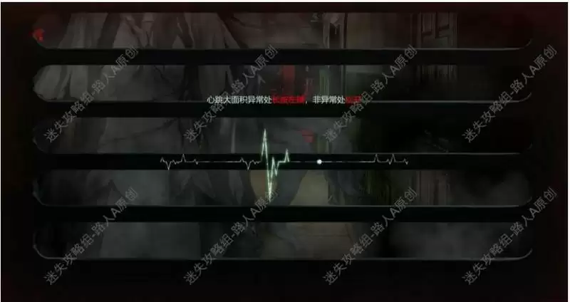 根据它的提示,在心跳波动剧烈时【长按鼠标左键】,非剧烈时则【松开】。(最后等怪物离开画面再出去)