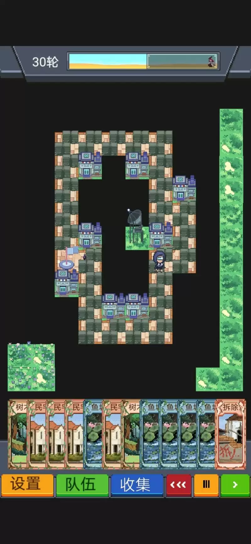 待阵型成型后,可以卡一个bug,把水库都拆剩一个,然后除了调查其他啥卡牌不用,刷新的水塘就不会更新为水库。