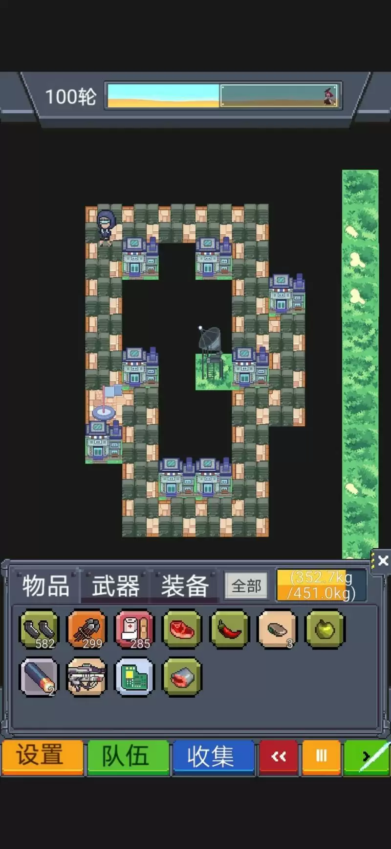 顾名思义,前期没啥好说的,前期没啥东西时可以放帐篷过度一下。注意!25轮开始,要随时留意角色的耐力与感染值,耐力少一半以上就要吃补给,一定要带齐补给、武器、弹夹、箭(楼主带了300根箭都不够)首先是楼主带的物质不够,武器方面刀和枪各带10把(弓箭角色会修所以直接最强铁弓)记得还要带消除感染的药。这次脸真的太黑了,每次打怪刷5-6张卡都没刷满地图,最后因物质不够而选择撤退了,主角打了50w+伤害