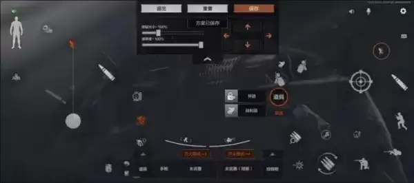 这里教大家一个小技巧,暗区突围在腰射状态下是没有准星的,但是我们可以将打开设置界面的齿轮按键,放到屏幕正中心,调整大小和透明度,让它变成一个"准心”,当然这个准心只能作为参考,比如可以先通过它预瞄目标再开镜,提升索敌效率,腰射时也可以作为参照物。