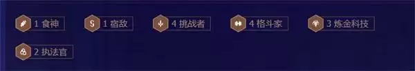 羁绊:1食神+1宿敌+4挑战者+4格斗家+3炼金科技+2执法官