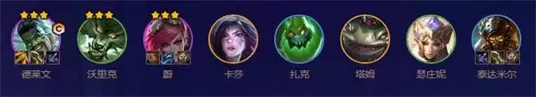 英雄阵容:德莱文+沃里克+蔚+卡莎+扎克+塔姆+瑟庄妮+泰达米尔