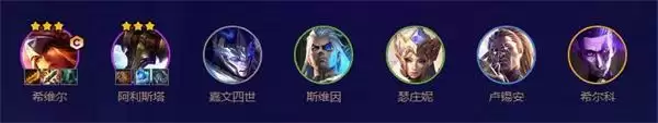 英雄阵容:希维尔+阿利斯塔+嘉文四世+斯维因+瑟庄妮+卢锡安+希尔科