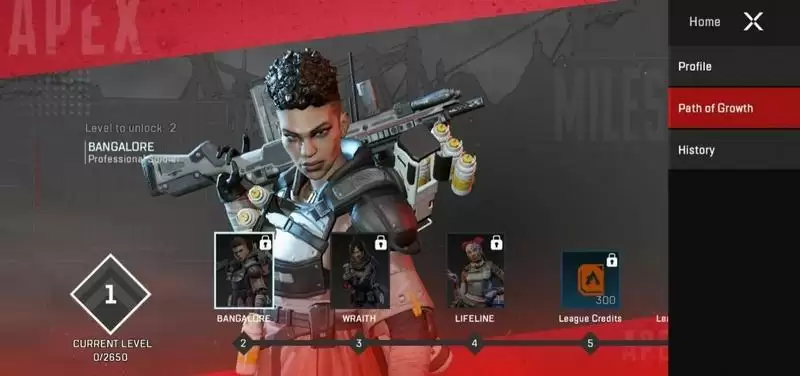 达到不同的等级,即可解锁「班加罗尔」、「恶灵」、「命脉」、「探路者」、「直布罗陀」。