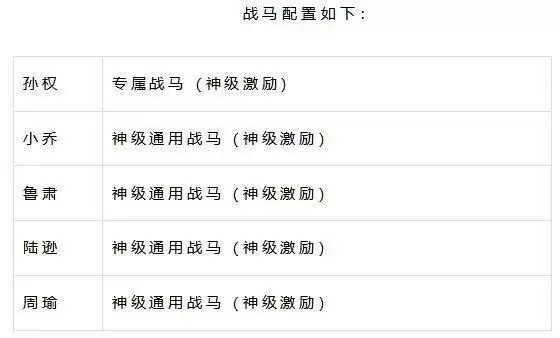 这个配置,全军5个武将进场士气35点(5个神级激励25点,孙权专属战马10点)。其中孙权、小乔、鲁肃可以替换为任意鼓将,但如果孙权被替换,那么全体武将进场士气就只有25点了,如果替换成其他国家的鼓将,队伍就少一点国家加成。