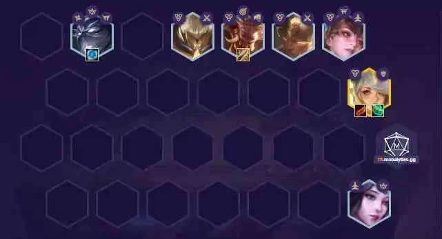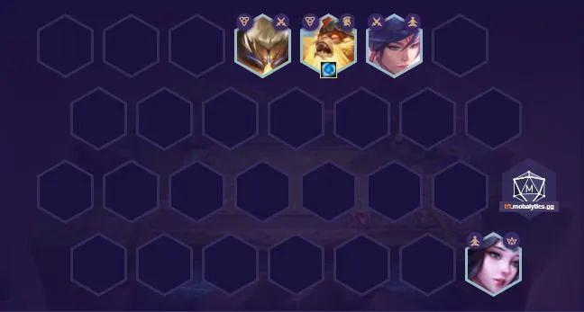 棋子组成:慎(4)、武器(2)、狼人(4)、盲僧(5)刀妹(3)、光辉(3)、风女(2)
