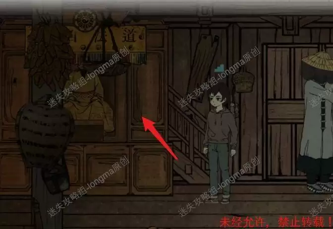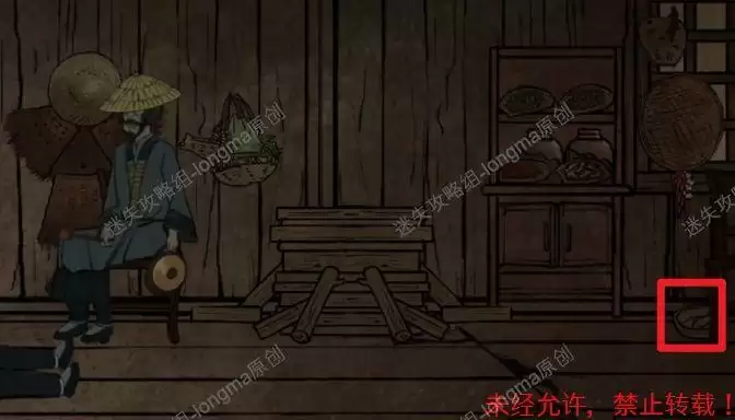进入杂物间,观察右边的柜子,完成小游戏(将小零件移动至对应颜色和图形的位置),得到【素衣】,在柜子左边的框中得到【斗笠】。