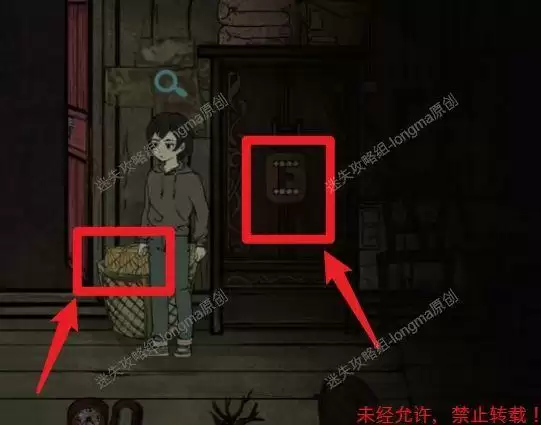 来到最右边门口,使用【铁丝】开门(小游戏:点击撬锁,每个机关到一定的高度时松开,开始撬第二个机关)。