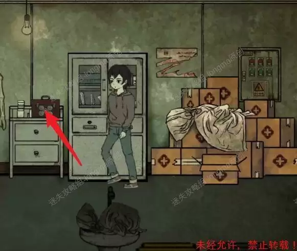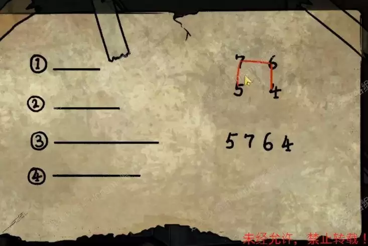 向左返回药箱处,按照上方的数字图形输入密码(如图65.1),打开箱子得到【麻醉针】和【铁丝】。