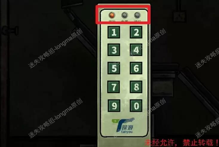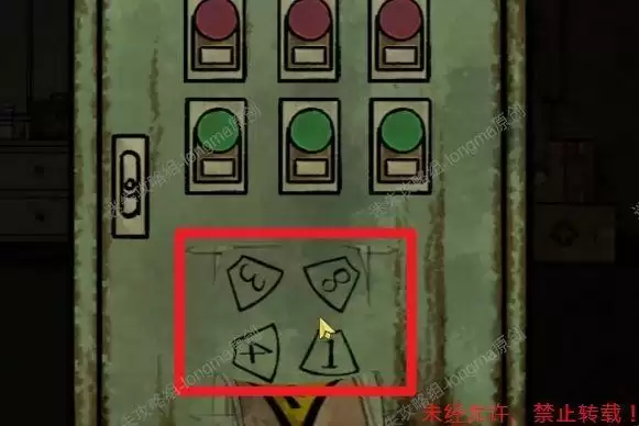 返回第一个房间,点击电箱,根据观察机械椅上的指示灯密码:左红、中绿、左绿、右红、中红、右绿,依次点击电箱上红绿按钮。