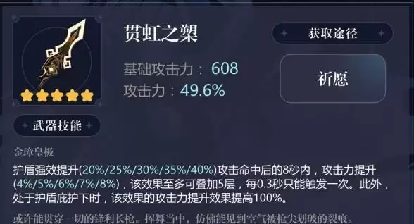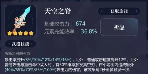 1、可以有效的提升高额的基础攻击力以及一定的元素充能效率;