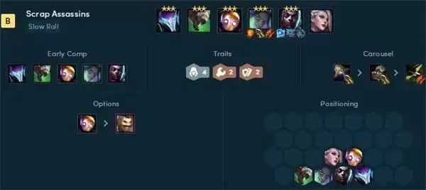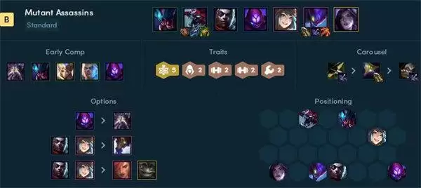 刺客新加入了螳螂等成员,在s6.5中玩家依然可以用刺客作为一个上分手段,刺客可以配置的阵容也是很多样的。
