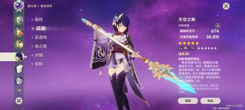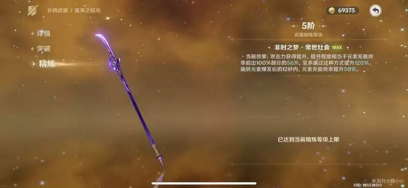 1、可以对武器进行锻造,增加充能效率,也是比较适合云堇的一个武器;