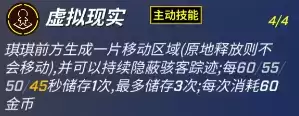 虚拟现实会提供给琪琪路径引导,从而使自身移速得到一个极短时间的爆发加成,之后移速加成会快速回落到10%/13%/16%/20%。