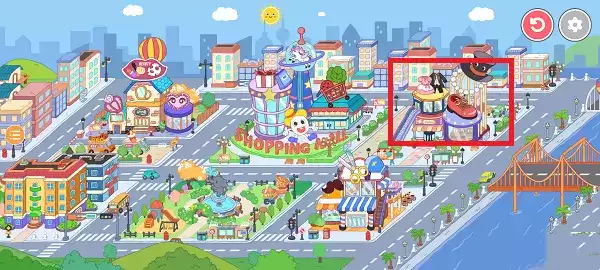 1、进入大世界中可以看到很多店铺建筑,点击服装店进入;