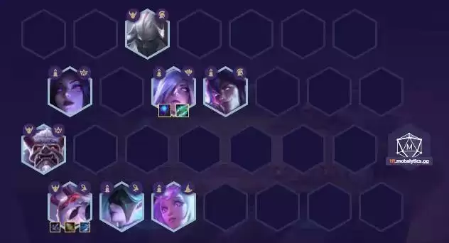 阵容推荐:剑魔(4)、蛇女(4)、瑞雯(4)、锤石(2)时光(5)、烬(4)、薇恩(1)、狍子(5)