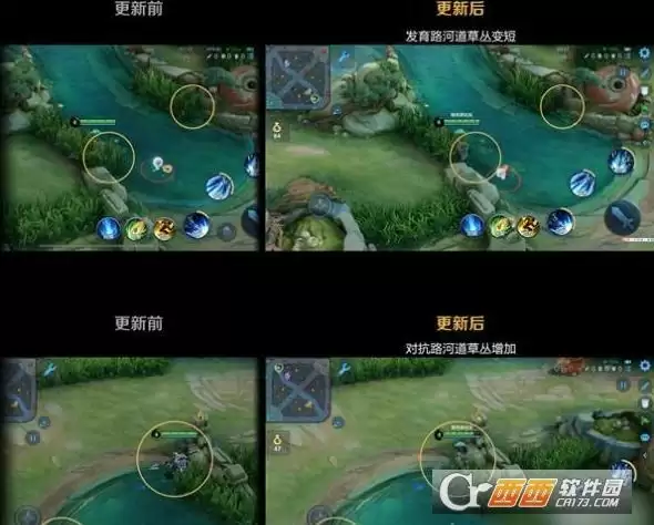 调整了河道草丛的位置,调整后发育路的河道草丛会更加远离线上,相反对抗路的草丛会离线上更近些。通过草丛地形调整,让发育路和对抗路的对线期行为更加符合其定位:发育路更侧重发育,对抗路更聚焦对抗。
