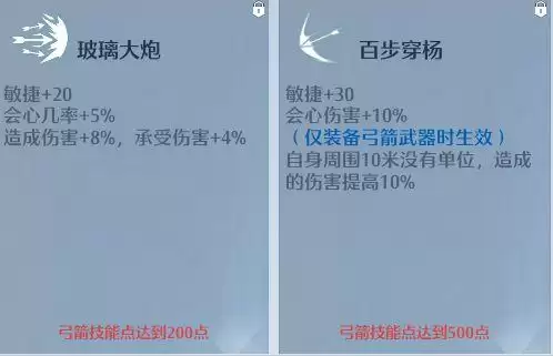 天赋在职业技能页没点到1200技能点时,推荐弓箭天赋页的【玻璃大炮】【百步穿杨】以增强冒险家输出能力,通用天赋页【银色子弹】将输出最大化。