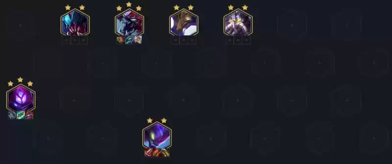 阵容推荐:雷克赛(2)、科加斯(3)、阿利斯塔(4)、卡萨丁(1)、玛尔扎哈(3)、卡兹克(4)