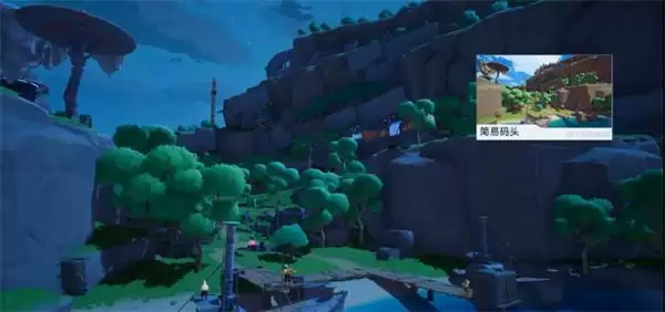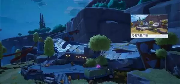 旁边居然还有一个传送门,通过传送门传送至码头入口折跃门,在向东的方向可以看到一座巨石,走到巨石脚下,使用喷气背包飞上巨石顶,就可以看到调查点了;