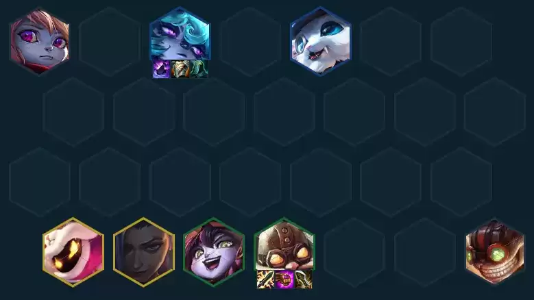 阵容推荐:波比(1)、薇古丝(3)、纳尔(3)、维迦(5)金克丝(5)、璐璐(2)、库奇(2)、吉格斯(1)