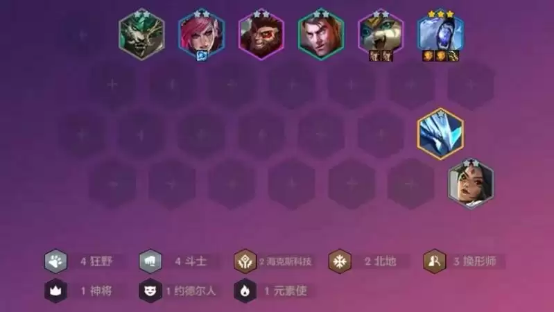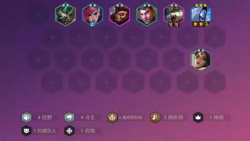 阵容推荐:南天之怒-嗜血猎手(1)、皮城执法官-蔚(3)、齐天大圣-孙悟空(4)、未来守护者-杰斯(2)、狻猊之心-迷失之牙(4)、雷霆之主-雷霆咆哮(3)、西斗之飒-狂野女猎手(1)