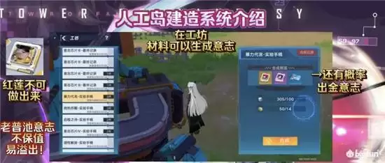 并且限制肝帝还有一个原因:就是工坊里还能消耗多余材料产出:意志升级材料,机器等级高了后,还有概率产出普池金意志,理论上只要材料不限,那肝帝就可以无限产出金意志了,所以这也为什么建造系统人工岛要私人化原因,不过值得一提的是金意志里并没有红莲的可出,只有老牌的普池意志,红莲意志并不在其中。
