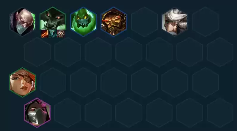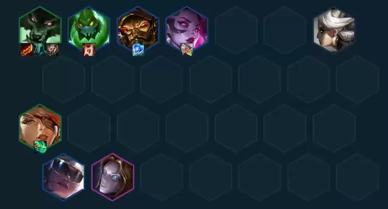 阵容推荐:沃里克(2)、扎克(3)、泰达米尔(3)、莫甘娜(3)卡蜜尔(1)、奎因(2)、赛娜(3)、奥莉安娜(4)