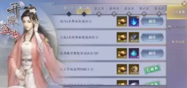 6.在“开服盛典”活动中还有一个“每日试炼”活动,在“开服盛典”界面的右侧页签中可以找到: