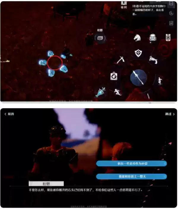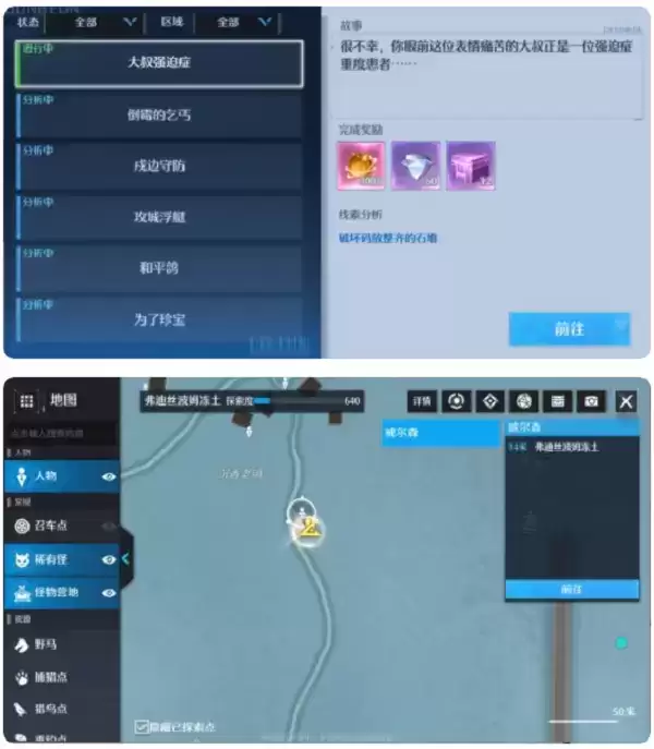 三、前往梦魇秘境(雾夜总部南方)寻找石头三块。进入秘境后点击任务栏,跟随任务指引即可找到石头。