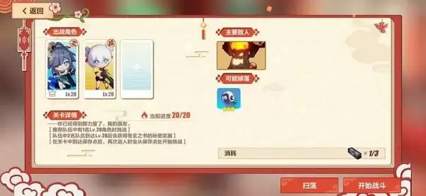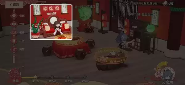 也就是我们的爬塔挑战关了,是一个章回中难度最高的一关,也是获取Q版小人的升级材料——混元石的主要途径,初挑战会有一定难度,但只要人物等级升上去了之后基本就是有手就行了~而EX关的入场券桃源村志则可以在每日活动面板中领取,每天最多三个。