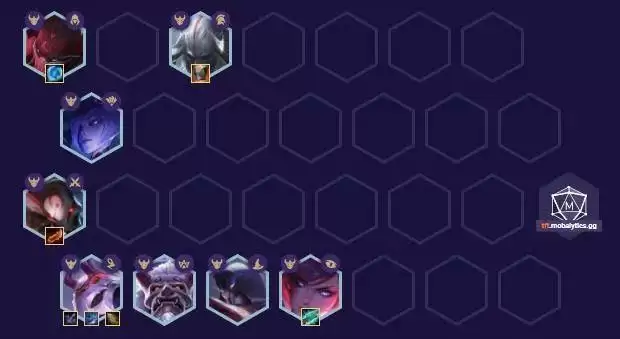 阵容推荐:派克(2)、剑魔(4)、蜘蛛(1)、滑板鞋(3)烬(4)、时光(5)、卡牌(1)、寡妇(3)