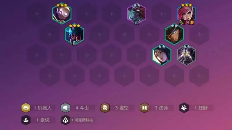 羁绊效果:1机器人4斗士3虚空3法师1狂野1豪侠1海克斯科技