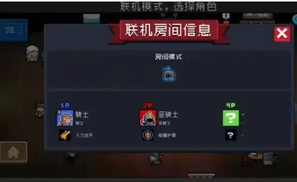 玩家进入客厅后,点击左上方的蓝色按键,可查看联机房间信息~ 关卡模式、挑战因子、队友的角色、皮肤、技能信息统统展示!大伙们就可以根据以上信息,合理(随心)选择角色和技能啦。②选天赋时,非房主玩家可给出建议联机模式中仅房主可选择天赋,不过在更新以后,非房主玩家也可以向房主传达你的天赋建议啦~