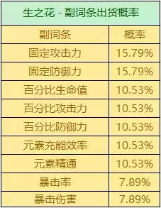 从这里就可以看出,其中玩家越不想要的属性,比如小攻击力、小防御、小生命,出货概率都是最高的,而玩家最想要的双暴属性,出货概率却是最低的,这也是圣遗物好胚子难出的概率之一。