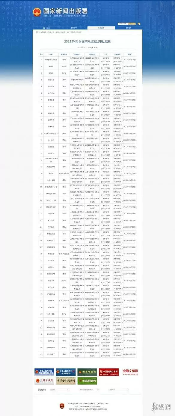 2022年4月版号过审游戏名单