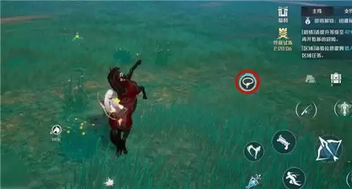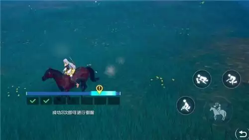 当看到套索图标后,迅速点击套马,然后角色就会跳到马背上试图驯服野马。