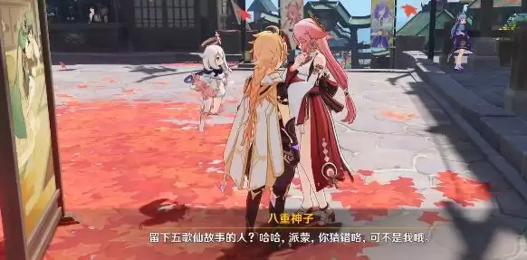 2、前往祭典葵翁之像,找到附近的八重神子与之对话,可以获取提示