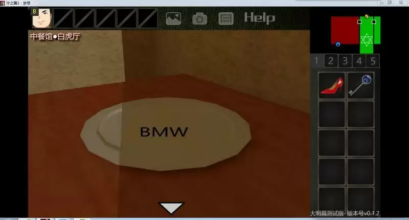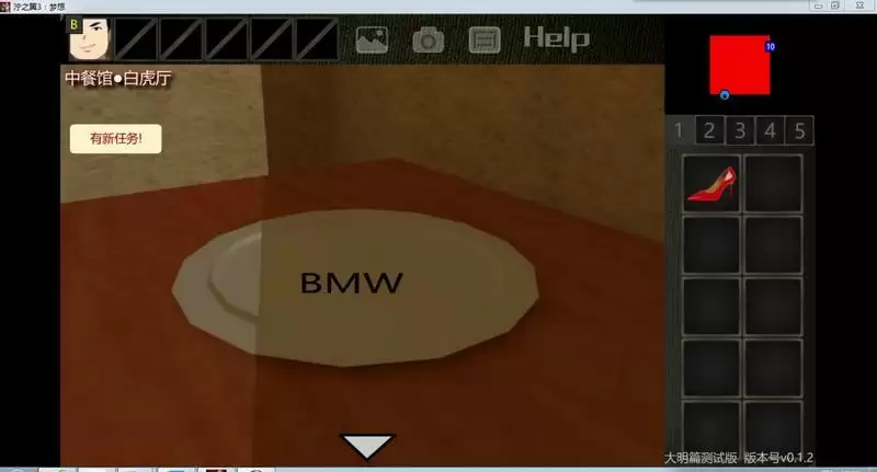 8.点击并获得高跟鞋,点击盘子,发现线索“BMW”