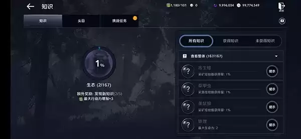 对游戏中地形、学问、生态、冒险、人物、头目方面的目标进行探索、收集,不同知识类别的获取方式也有所不同,有的知识通过击杀怪物获得,而有的知识只需要与人物对话就可以获得。只要达成目标,获得相对应的知识就能享有不同的增益效果加持。